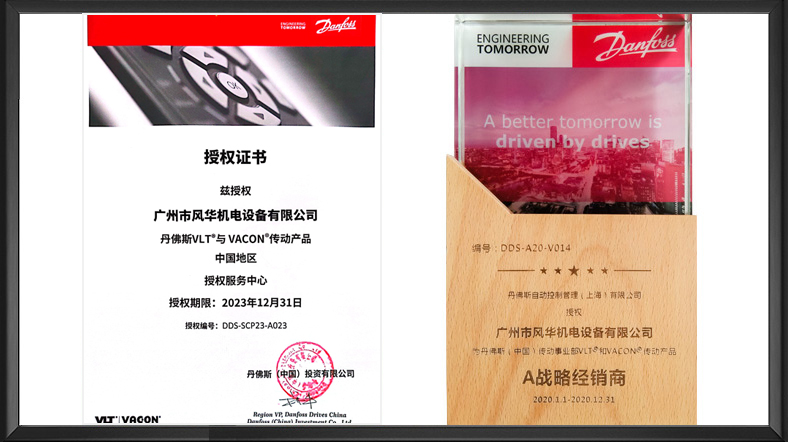 • 1、廣州風華公司介紹:廣州市風華機電設備有限公司是丹佛斯中國一級代理商,主要代理丹佛斯傳動與控制部的相關產品,公司有著多年應用和銷售自動化與驅動產品的經驗,專注于食品飲料、包裝、染整、化工、塑料、橡膠、機床、水處理等行業,并提供整套的傳動解決方案與產品。丹佛斯變頻器自從在中國市場投放以來已被廣泛應用在鋼鐵、煙草、食品飲料、水及污水處理、暖通空調、紡織機械、礦業、造紙業、制冷業和汽車業等領域,憑借高質量的產品、不斷革新的技術和優質的服務,其信譽日益深入人心,并贏得各界